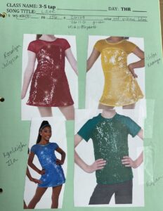 We do our best to make sure costume week goes smoothly but usually the entire class time is spent putting costumes on, running the dance a time or two, then taking them off so we can be sure everything is in the proper bag and folded as neatly as possible until it’s time to send the costumes home